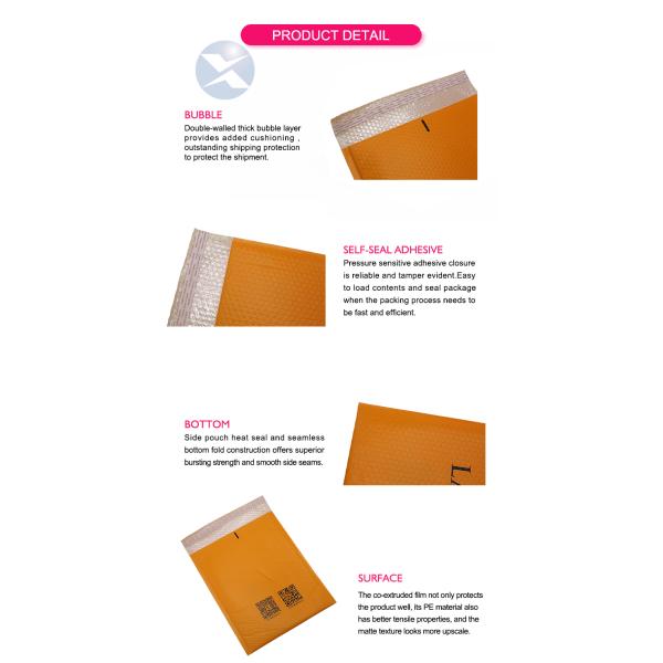 Self sealing packing mailers are made with the highest-quality, structurally sound materials to provide visual enhancement and security. Cushioned envelopes are lined with 80gsm bubble, with unique air cellular layers and 360° strong air bubble technology helping absorb shock during shipment. These heavy duty poly bubble mailers are tough enough to take on long, rough shipments with multiple processing centers and handlers without risk of penetration. Weatherproof cushion envelopes.